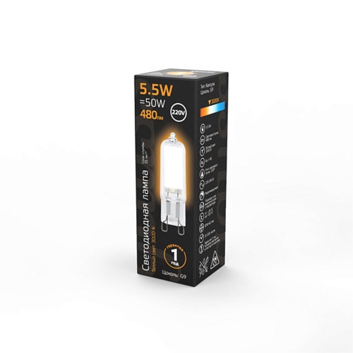 Характеристики Светодиодная лампа Gauss 5,5W 480Lm 3000K G9 107809105