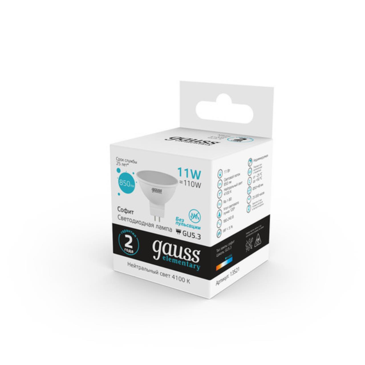 Светодиодная лампа Gauss Софит 11W 850Lm 4100K GU5.3 13521 13521_GAUSS