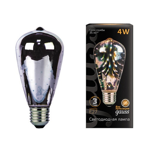 Характеристики Светодиодная филаментная лампа Gauss ST64 4W E27 147802404