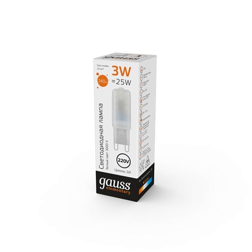 Светодиодная лампа Gauss ELEMENTARY 3W 240Lm 3000K G9 14913 14913_GAUSS