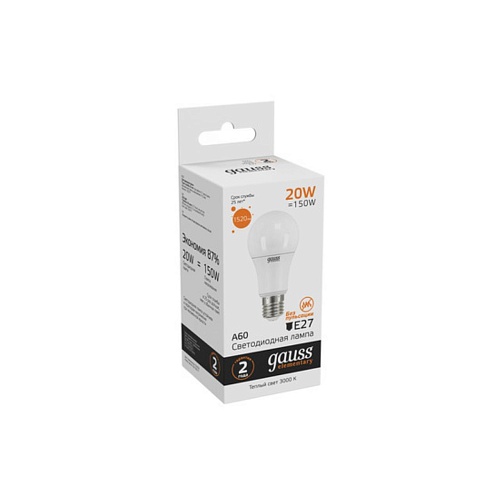 Светодиодная лампа Gauss A60 20W 1520Lm 3000K E27 23219 23219_GAUSS