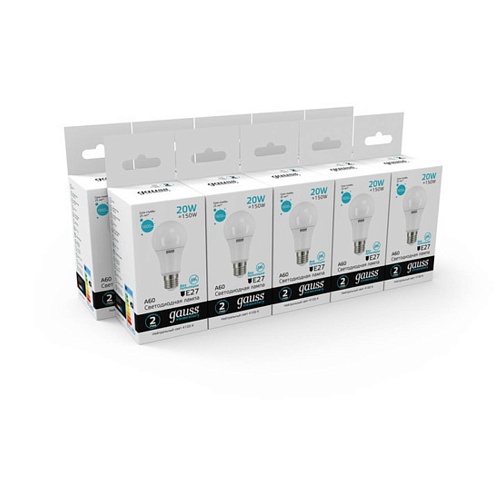 Светодиодная лампа Gauss A60 20W 1600Lm 4100K E27 23229 23229_GAUSS