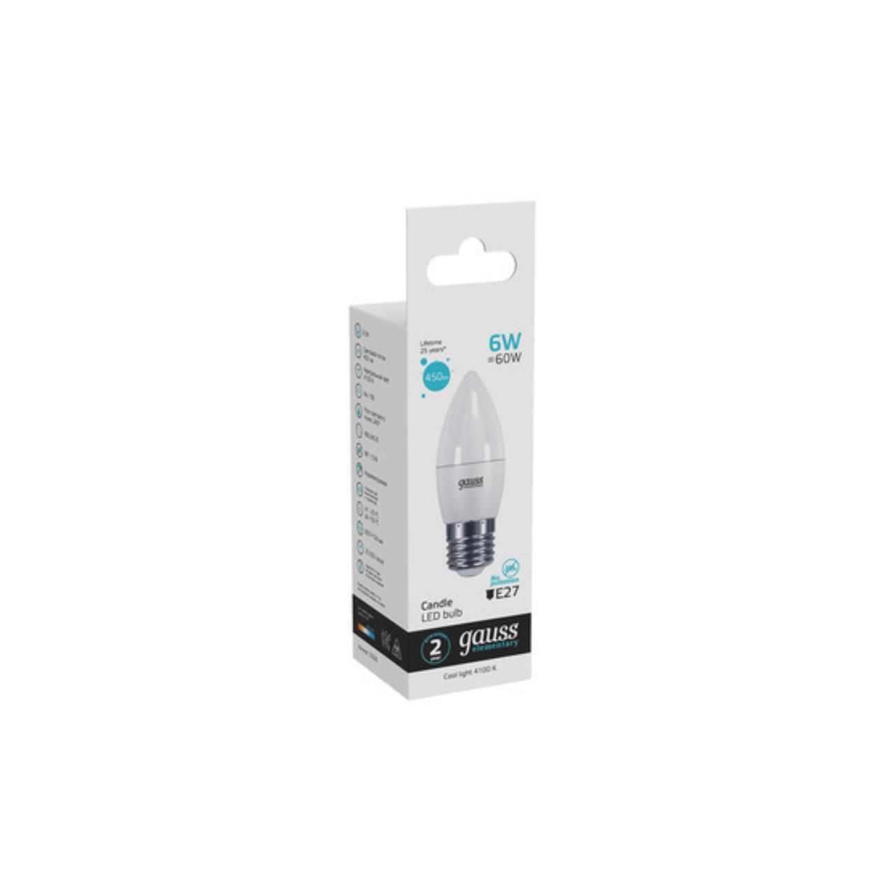 Светодиодная лампа Gauss Свеча 6W 450Lm 4100K E27 33226 33226_GAUSS