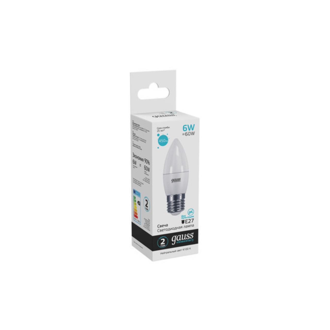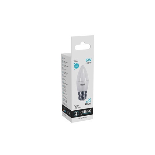 Характеристики Светодиодная лампа Gauss Свеча 6W 450Lm 4100K E27 33226