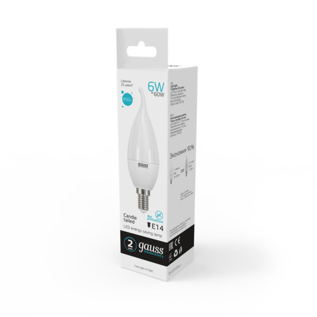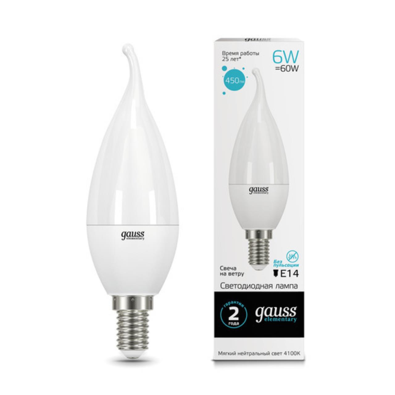 Отзывы о Светодиодная лампа Gauss Свеча на ветру 6W 450Lm 4100K E14 34126