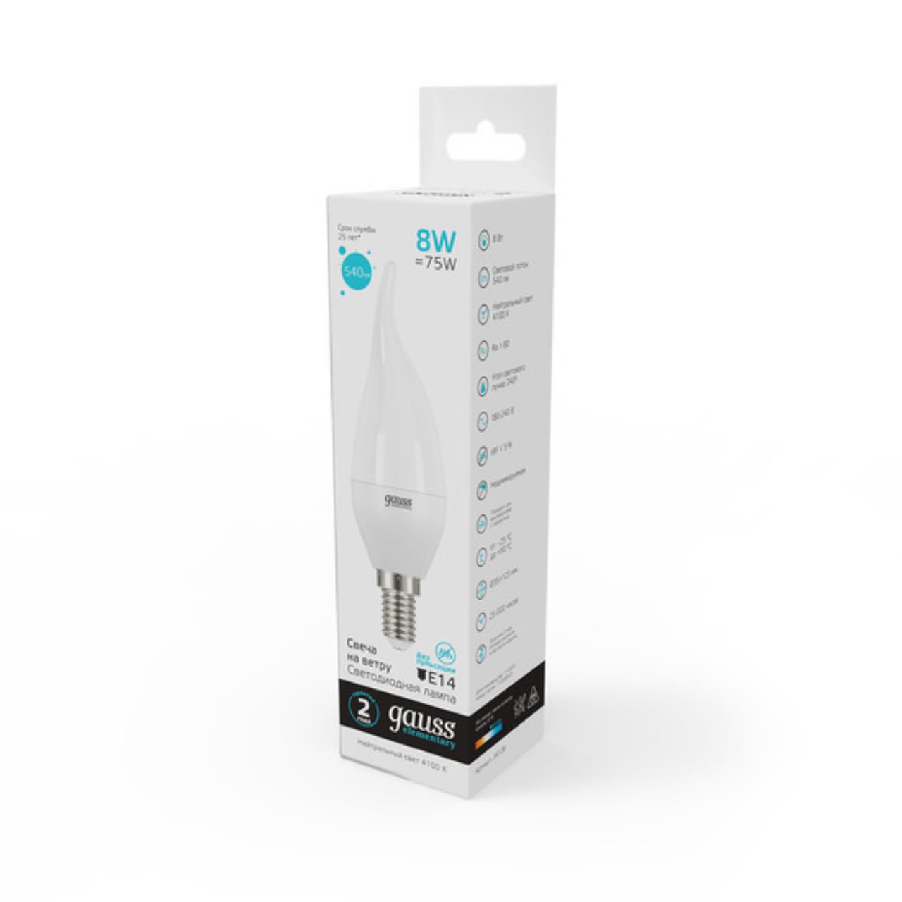 Светодиодная лампа Gauss Свеча на ветру 8W 540Lm 4100K E14 34128 34128_GAUSS