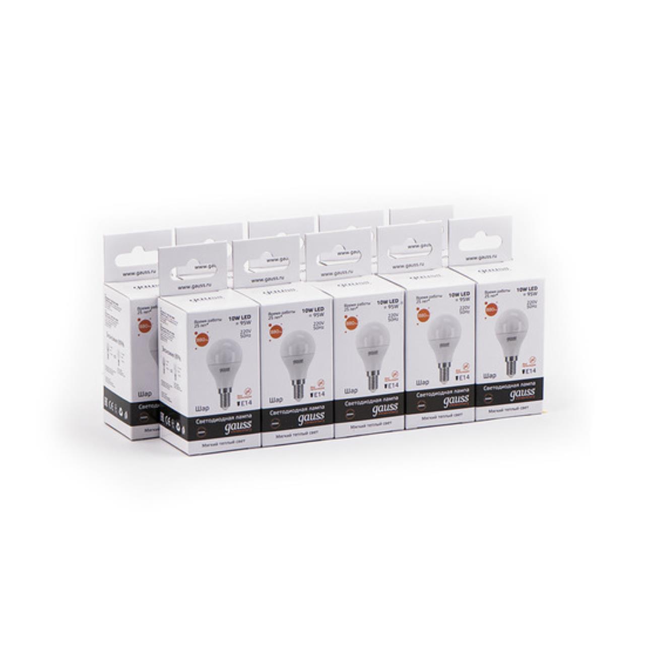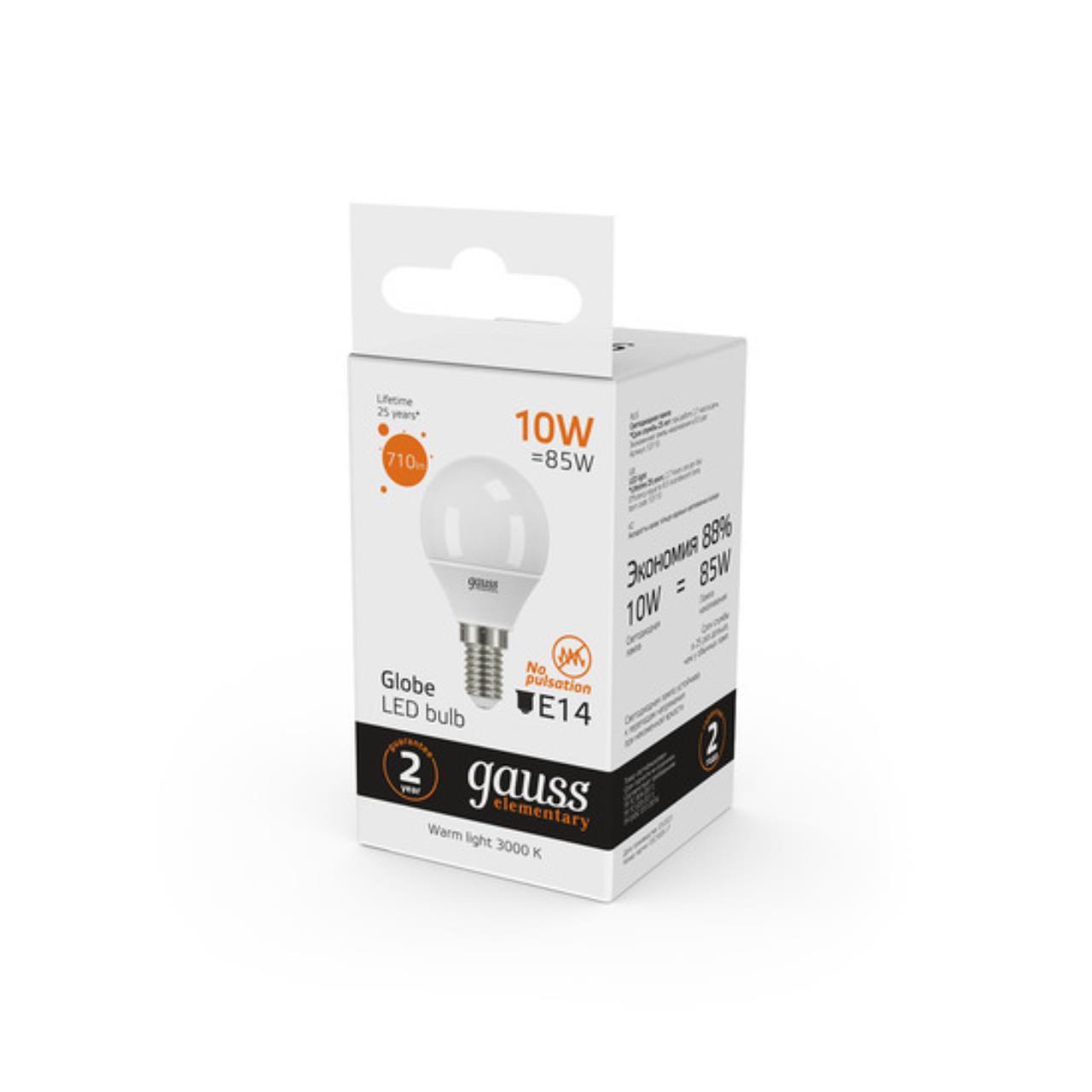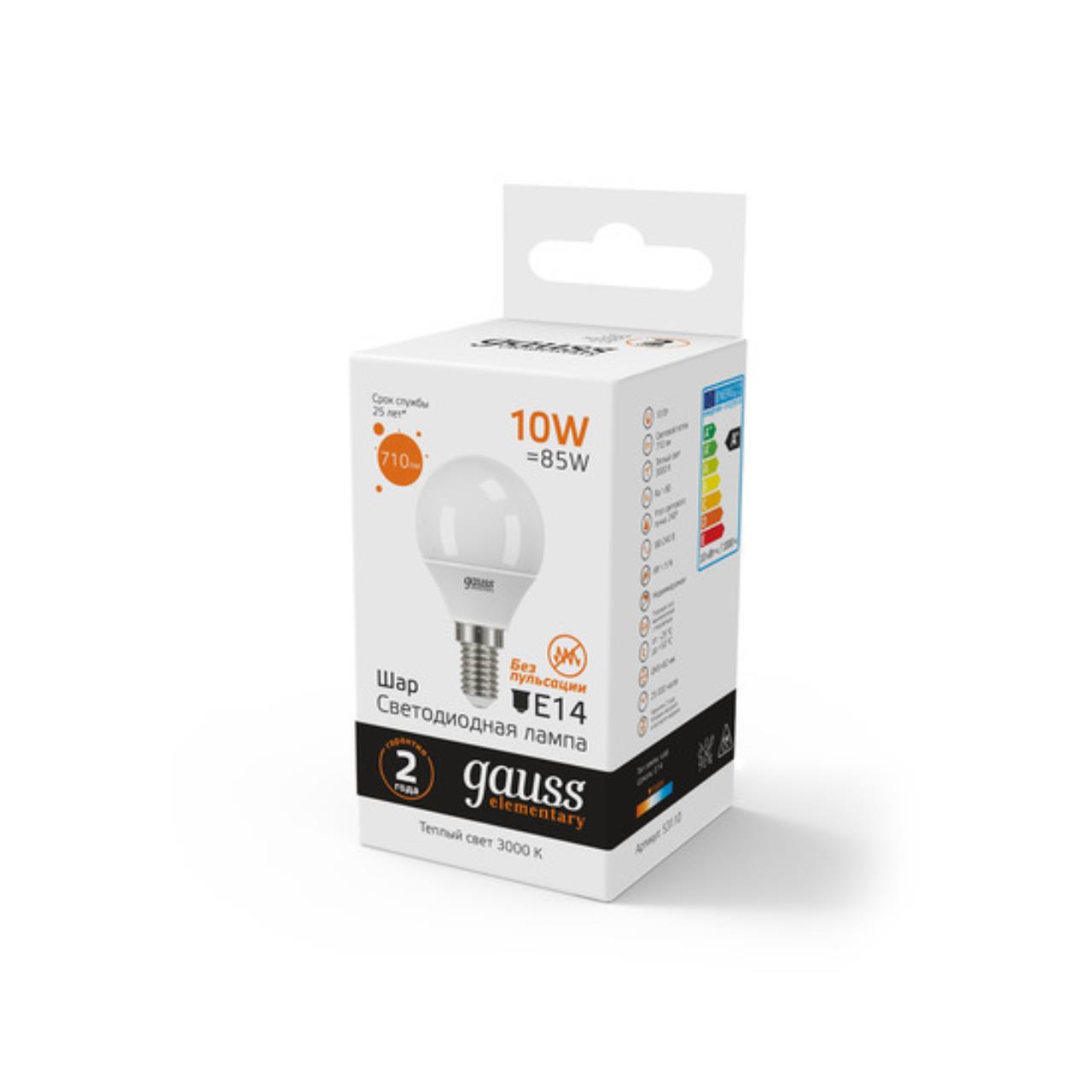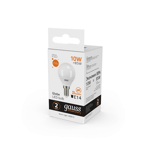 Светодиодная лампа Gauss Шар 10W 710Lm 3000K E14 53110 53110_GAUSS