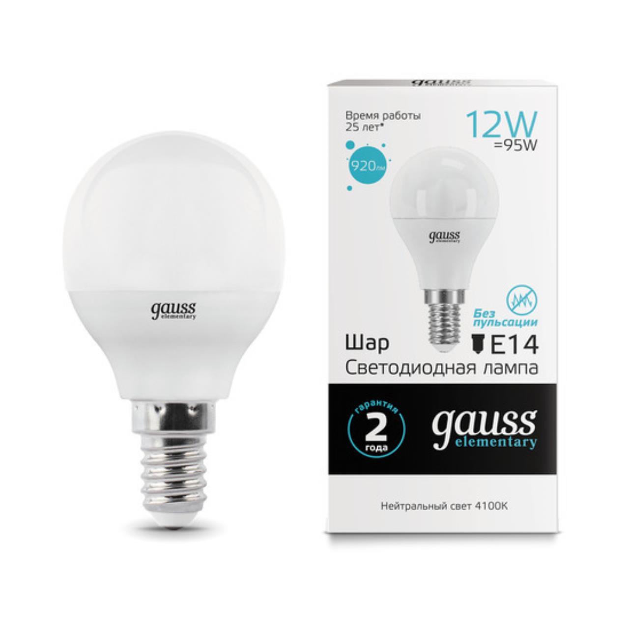 Отзывы о Светодиодная лампа Gauss Шар 12W 920Lm 4100K E14 53122