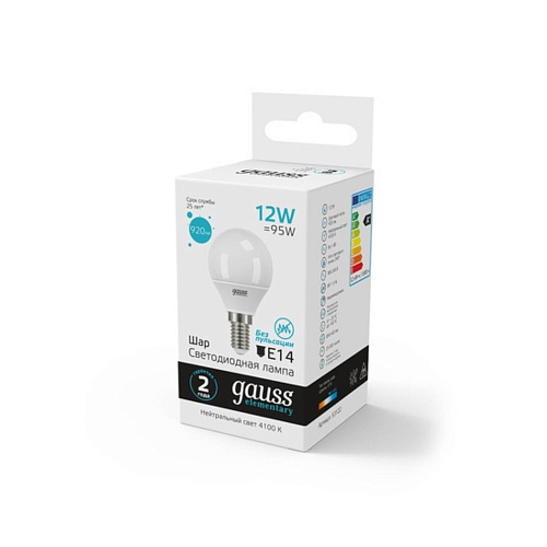 Характеристики Светодиодная лампа Gauss Шар 12W 920Lm 4100K E14 53122