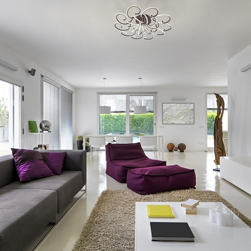 • Важный фактор для потолочных ламп и люстр – направление рассеивания света. Есть различные варианты и направления. В сторону, вверх или вниз, на пол. Если вы выбрали направление «вверх», следует рассмотреть более мощную лампу, так как освещение будет происходить при помощи отраженного от потолка света.