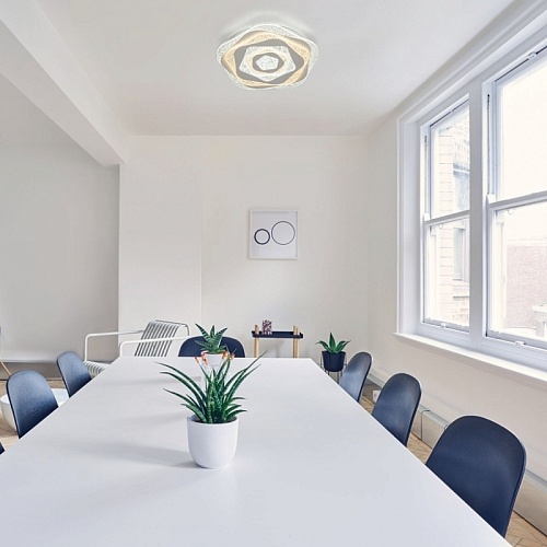 • Важный фактор для потолочных ламп и люстр – направление рассеивания света. Есть различные варианты и направления. В сторону, вверх или вниз, на пол. Если вы выбрали направление «вверх», следует рассмотреть более мощную лампу, так как освещение будет происходить при помощи отраженного от потолка света.
