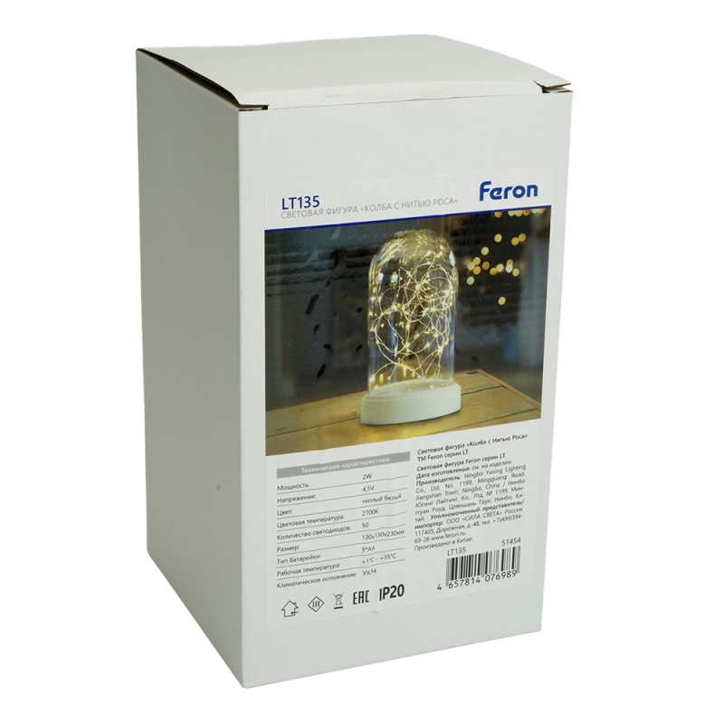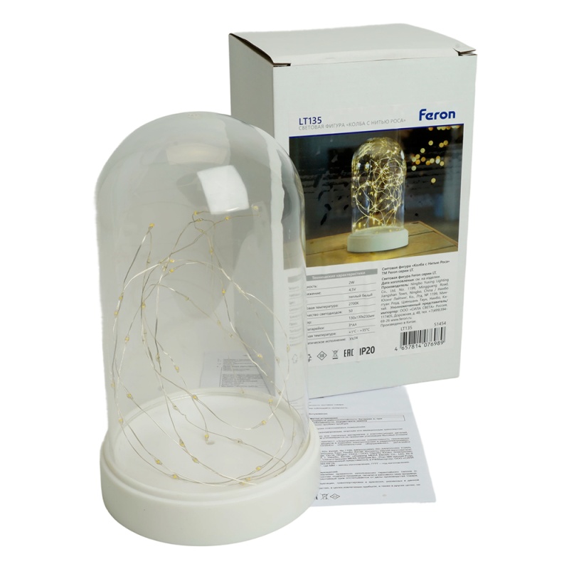 Характеристики Световая фигура "Колба с Нитью Роса" 50LED 2700K, батарейки 3*АА, 23см, LT135