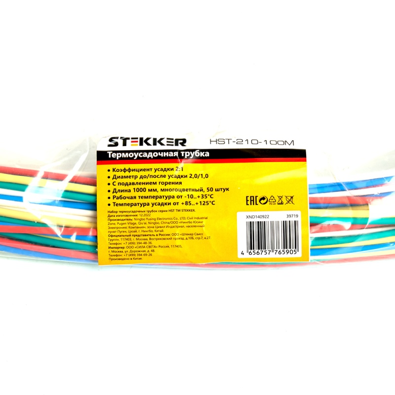 Характеристики Термоусадочная трубка STEKKER HST-210-100M, длина 100 см., коэф. усадки 2:1