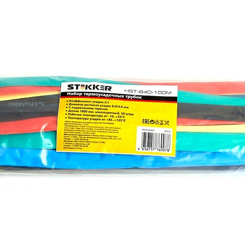 Характеристики Термоусадочная трубка STEKKER HST-840-100M, длина 100 см., коэф. усадки 2:1, мультиколор