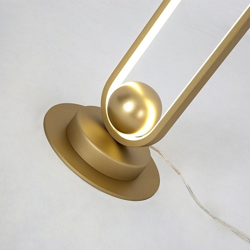 Металлический каркас золотого цвета, глянцевое черное покрытие декоративного шара, встроенная LED лента, выключатель на проводе.