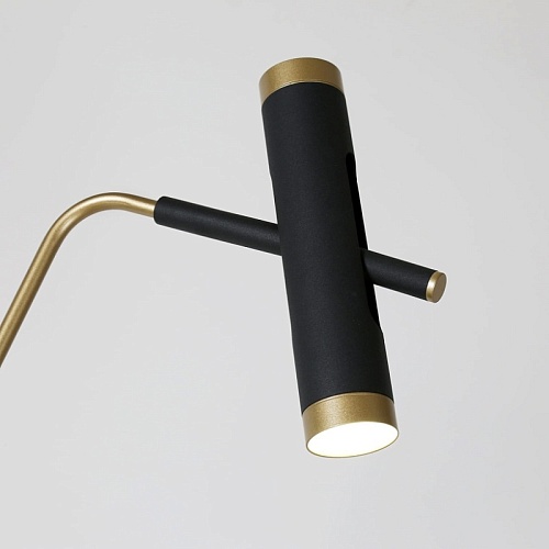 Металлический каркас черного матового цвета, элементы окрашены в золотой цвет, плафон поворотный, модуль LED с двух сторон плафона, акриловый рассеиватель.