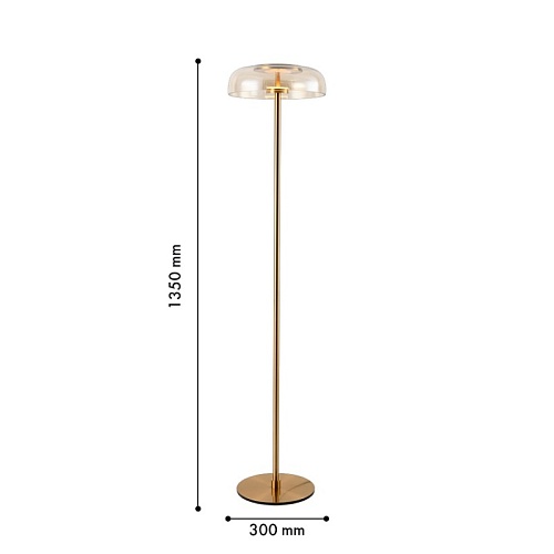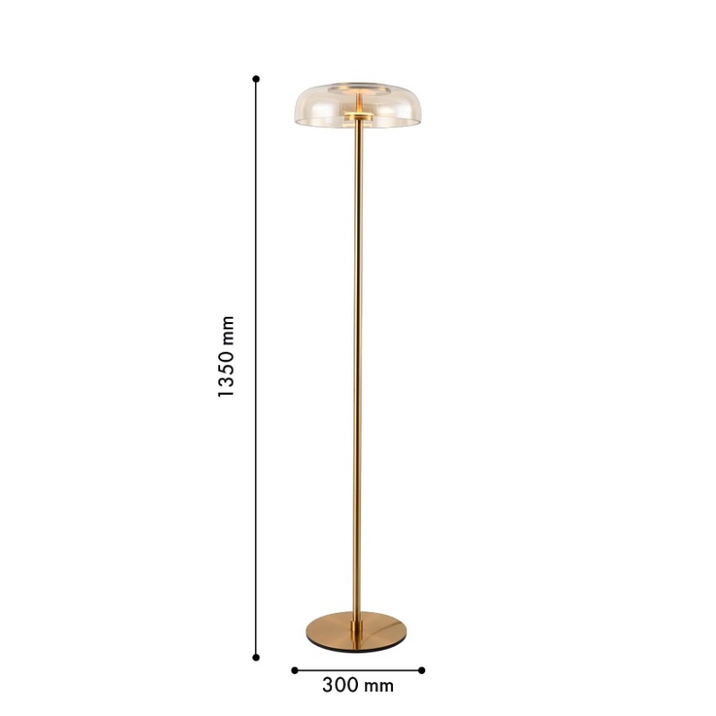 Металлический каркас в цвете латунь, с выдувным плафоном из прозрачного стекла, внутри которого находится светящийся элемент с модулем LED.