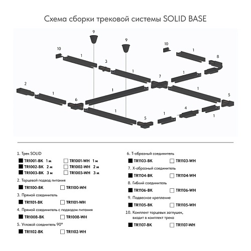 DENKIRS SOLID — однофазная трековая система, получившая широкое распространение на светотехническом рынке благодаря своей доступности, простоте и надежности. Трек системы Solid выполнен из прочного алюминиевого сплава, он не подвержен деформации и изгибам даже на больших отрезках. Это свойство особенно важно при подвесном монтаже. Система оснащена толстыми медными контактами, что гарантирует надежность и обеспечивает высокую максимально допустимую мощность. Надежные и прочные комплектующие трековой системы SOLID BASE, изготовленные из высококачественного алюминиевого сплава и акрила. В качестве проводников использованы утолщенные медные контакты, обеспечивающие высокую максимально допустимую мощность трековой системы. Благодаря продуманной конструкции и качественному алюминиевому сплаву трек не подвержен деформации, что особенно важно при подвесном монтаже. Применяется для создания трековой системы X-образной формы. Передает электрическую энергию между треками.