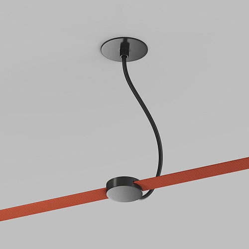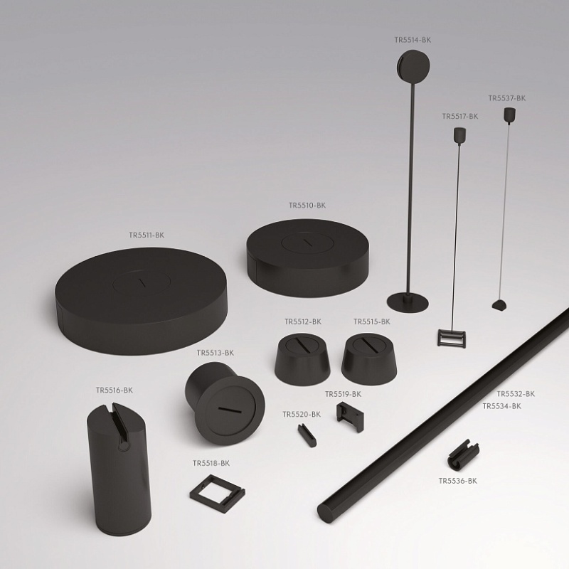 TR5514-BK Встраиваемое основание с возможностью подачи питания треку-ремню Belty, серия Base. Не вмещает блок питания. D65мм, монтажный D50мм, коннектор на проводе, L200-1500мм, IP20, черный, алюминий