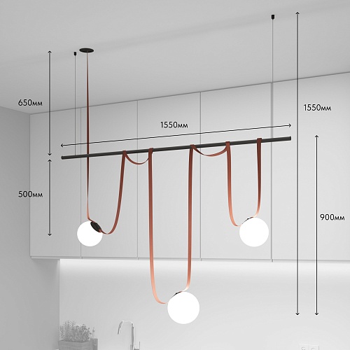 Комплект ременной трековой системы Belty. Предназначен для сборки готового светильника силами покупателя. Поставляется в наборе, состоящем из отдельных комплектующих: элементов ременной системы, блока питания и светильников. Обратите внимание - данный дизайн осветительной системы предполагает выносное размещение блока питания в электрическом щитке/лючке и тд. Необходимо обеспечить подведение низковольтного вывода питания к ременной системе. Если отсутствует возможность обеспечить низковольтный вывод питания, возможно использование модели накладного основания, предусматривающего размещение блока питания внутри себя (артикул TR5510-BK/TR5511-BK). В этом случае изменяется цена набора, а также внешний вид основания.\n\nСостав комплекта: \nTR5513-BK Встраиваемое основание BELTY BASE - 1 шт\nTR5501-BR Трек-ремень BELTY BASE - 1 шт\nTR5501-BR Трек-ремень BELTY BASE- 1 шт\nTR5536-BK Крепление-зажим BELTY ROD - 5 шт\nDK5550-BK Трековый светильник BELTY ORB - 2 шт\nDK5552-BK Трековый светильник BELTY ORB - 1 шт\nTR5537-BK Подвес для штанги BELTY ROD - 2 шт\nTR5532-BK Штанга BELTY ROD - 1 шт\nTR5526-AL - 1 шт\n\nФактическая длинна ремня 5500 мм. Срок гарантии 3 года.