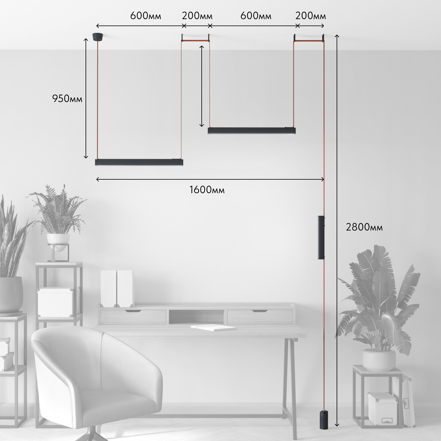 Комплект ременной трековой системы Belty. Предназначен для сборки готового светильника силами покупателя. Поставляется в наборе, состоящем из отдельных комплектующих: элементов ременной системы, блока питания и светильников. Обратите внимание - данный дизайн осветительной системы предполагает выносное размещение блока питания в электрическом щитке/лючке и тд. Необходимо обеспечить подведение низковольтного вывода питания к ременной системе. Если отсутствует возможность обеспечить низковольтный вывод питания, возможно использование модели накладного основания, предусматривающего размещение блока питания внутри себя (артикул TR5510-BK/TR5511-BK). В этом случае изменяется цена набора, а также внешний вид основания.\n\nСостав комплекта: \n TR5512-BK Накладное основание BELTY BASE - 1 шт\n TR5501-BR Трек-ремень BELTY BASE- 1 шт\n TR5518-BK Накладное крепление BELTY BASE - 4 шт\n DK5574-BK Трековый светильник BELTY LINEAR - 1 шт\n DK5576-BK Трековый светильник BELTY LINEAR - 2 шт\n TR5516-BK Утяжелитель BELTY BASE - 1 шт\n TR5526-AL - 1 шт\n\nФактическая длинна ремня 8400 мм. Срок гарантии 3 года.