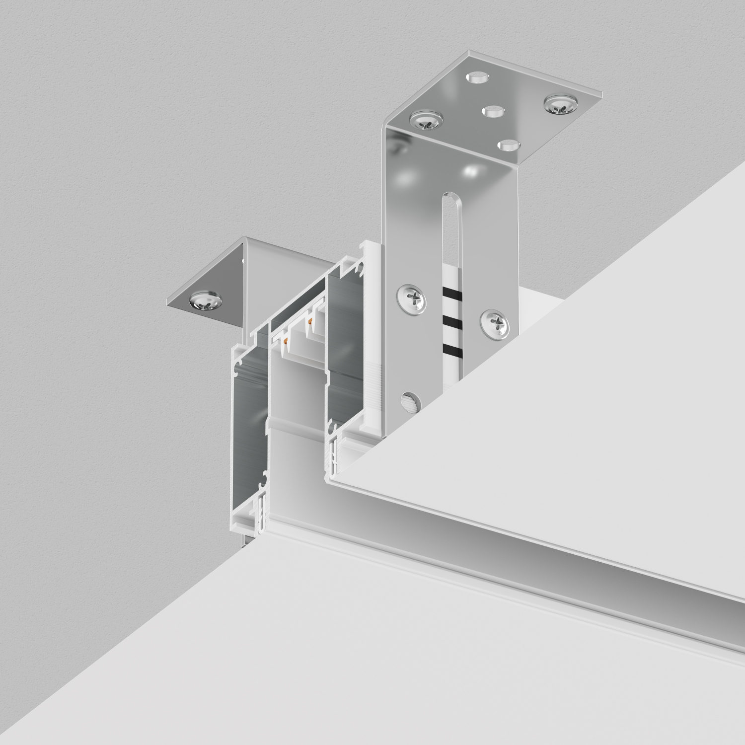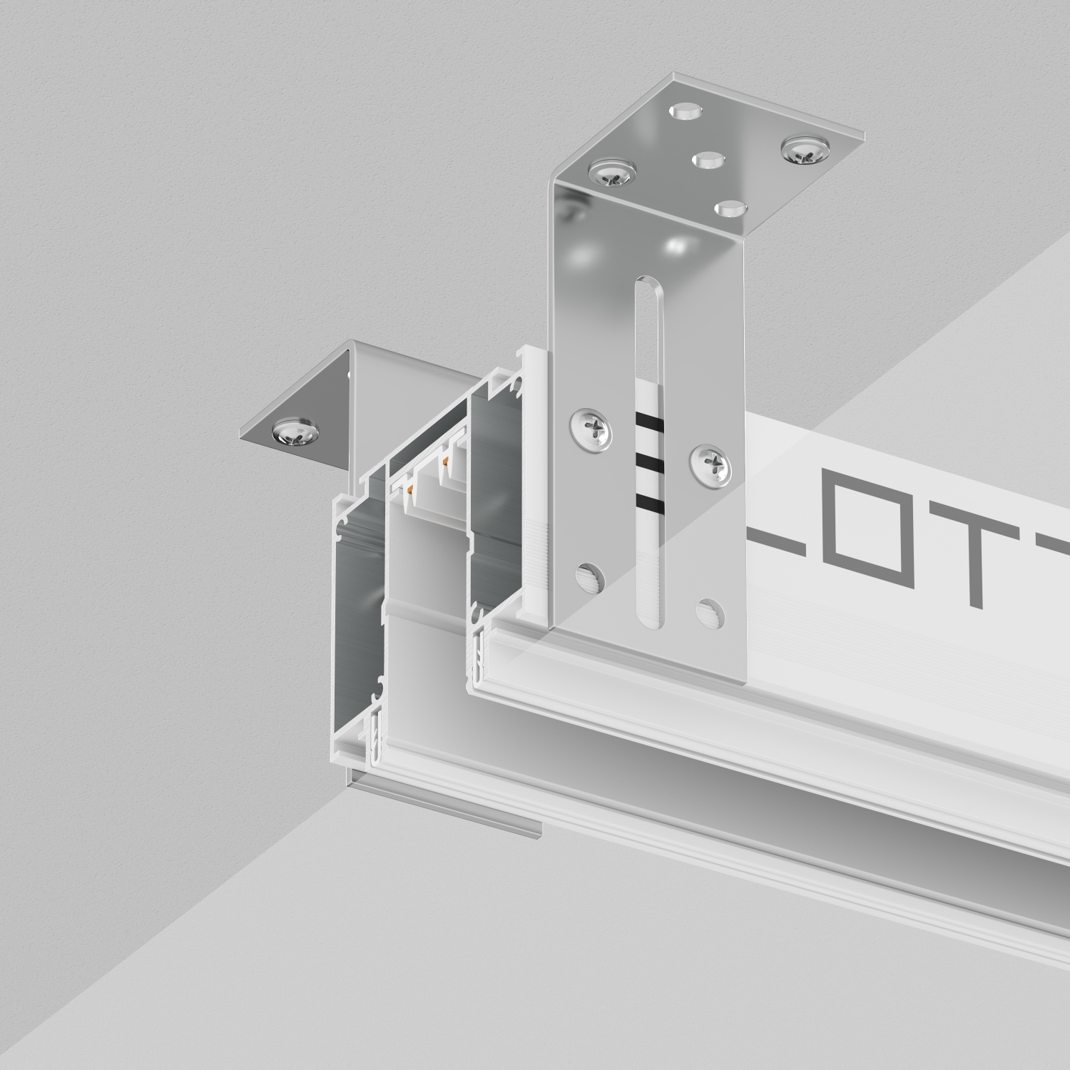 Объединенный профиль системы SLOTT с треком DENKIRS SMART. Предназначен для крепления любого типа полотна натяжного потолка. Подходит как для тканевых натяжных потолков, так и для натяжных потолков из ПВХ-пленки. Не требует приобретения отдельного трека. Профиль-трек 2 в 1. Подходит для монтажа натяжного потолка любого типа (пленочный/тканевый). Торцевые заглушки TR2017 приобретаются отдельно.Трек-профиль SLOTT for DENKIRS SMART. Оснащен патентованной демпферной системой крепления полотна SLOTT. Подходит для установки потолков любого типа: тканевых натяжных потолков, а также, натяжных потолков из ПВХ пленки. Не требует приобретения отдельного трека установки светильников. Торцевые заглушки TR2017-WH, подвод питания и соединительные элементы приобретаются отдельно. Для соединения нескольких профилей используются комплекты соединителей: TR2018-AL для прямого соединения, TR2019-AL для соединения под углом 90 градусов (отрезки профиля предварительно необходимо от торцевать под углом 45 градусов). Срок гарантии 3 года.