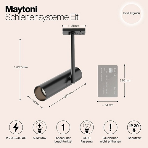 Характеристики Трековый светильник Technical TR002-1-GU10-B