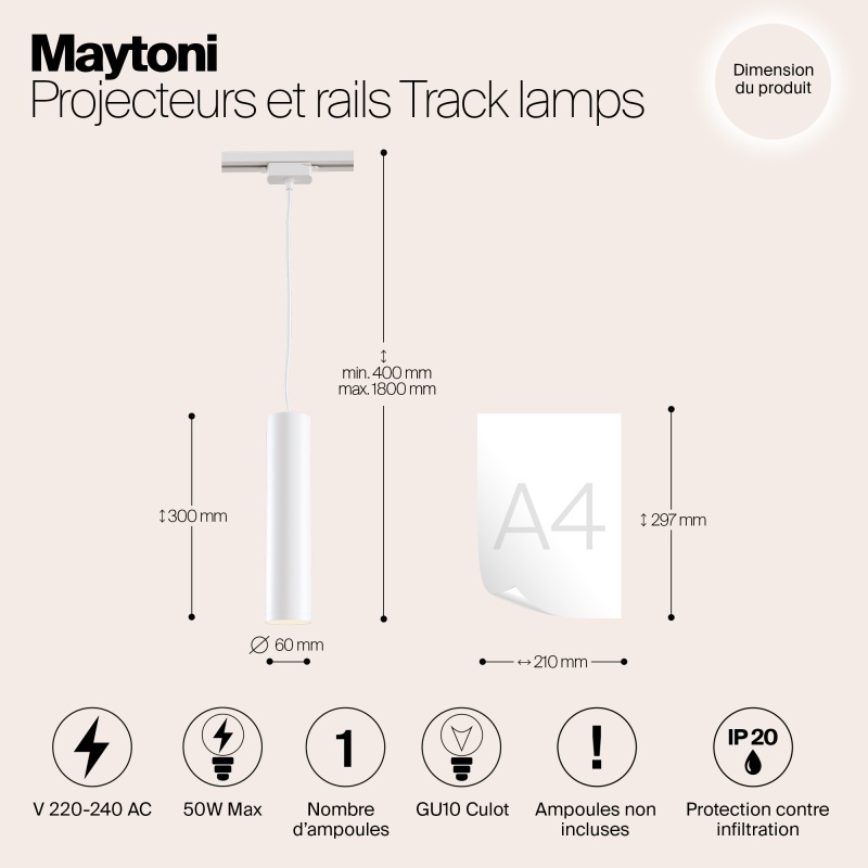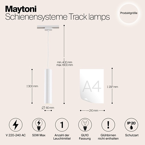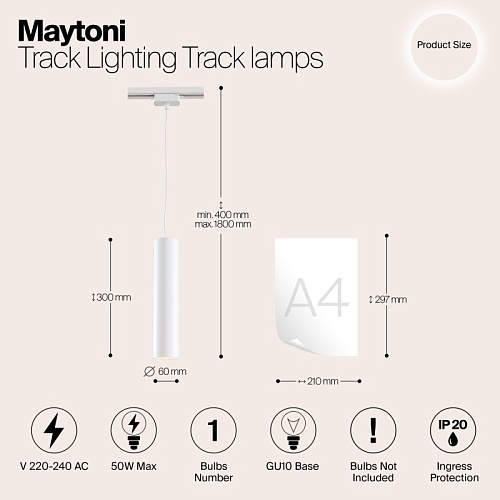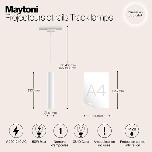 Характеристики Трековый светильник Technical Track lamps TR008-1-GU10-W