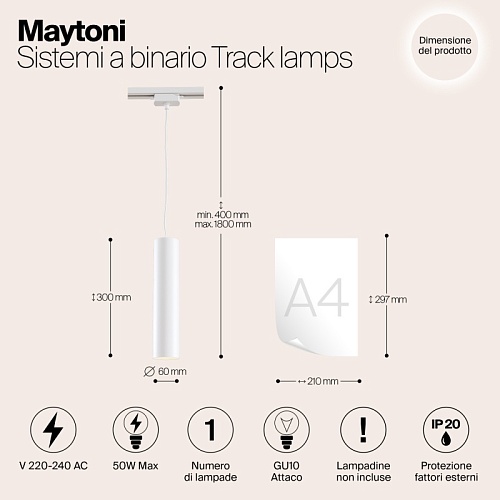 Трековый светильник Technical Track lamps TR008-1-GU10-W