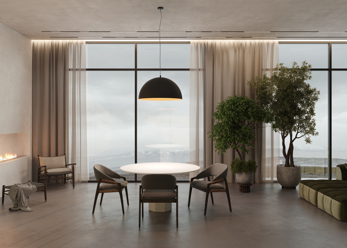 Алюминиевый корпус в черном и белом цветах. Три размера – три варианта мощности. LED-источник света. Угол рассеивания — 120°. Цветовая температура 3000К или 4000К, а также умные модели с регулируемым диапазоном от 3000К до 6000К и диммированием по протоколу Bluetooth Mesh. Это позволяет управлять группой или отдельным светильником: вкл/выкл, диммировать, изменять цветовую температуру. Также доступно беспроводное управление светом со смартфона, пульта, с помощью голосовых помощников.
