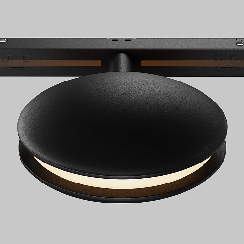 Алюминиевый корпус черного цвета. LED-источник света. Цветовая температура 3000K, 4000К. Модели с регулировкой цветовой температуры от 3000K до 6000K и диммированием по протоколу Bluetooth Mesh. Эффект линии света – «светового коридора». Специальная линза - оптический эффект кругового периферического освещения. Поворотный механизм - вращение по своей оси. Рекомендованная высота потолка в помещении для качественного и красивого луча - 2,2 - 2,5 метра.