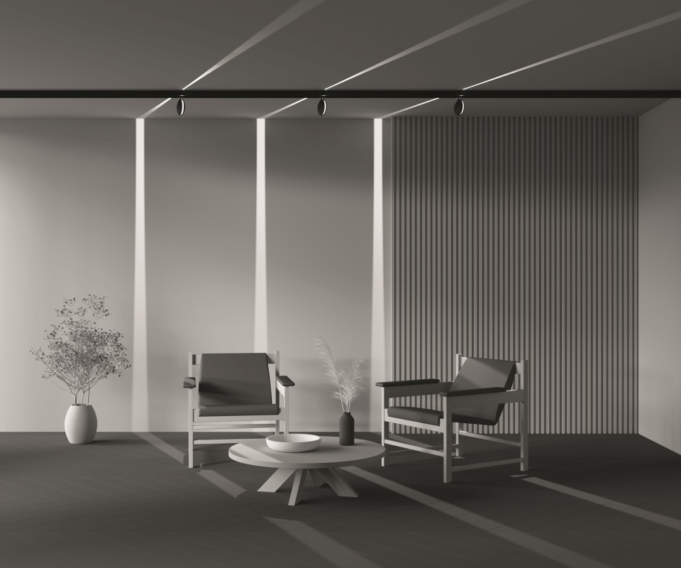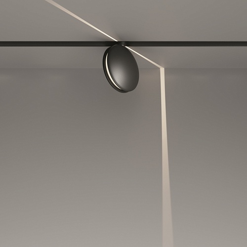 Алюминиевый корпус черного цвета. LED-источник света. Цветовая температура 3000K, 4000К. Модели с регулировкой цветовой температуры от 3000K до 6000K и диммированием по протоколу Bluetooth Mesh. Эффект линии света – «светового коридора». Специальная линза - оптический эффект кругового периферического освещения. Поворотный механизм - вращение по своей оси. Рекомендованная высота потолка в помещении для качественного и красивого луча - 2,2 - 2,5 метра.