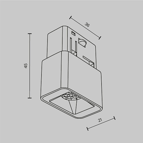 Алюминиевый корпус в черном и белом цветах. LED-источник света. Цветовая температура 3000K и 4000К. Совместим с радиусными коннекторами. Уникальная оптическая система светильника создаёт удивительный эффект "свет из ниоткуда" и незаметен даже когда включён, подсвечивая только необходимый объект. Низкий коэффициент слепимости обеспечит антибликовый фильтр HoneyComb, который встроен в светильник.