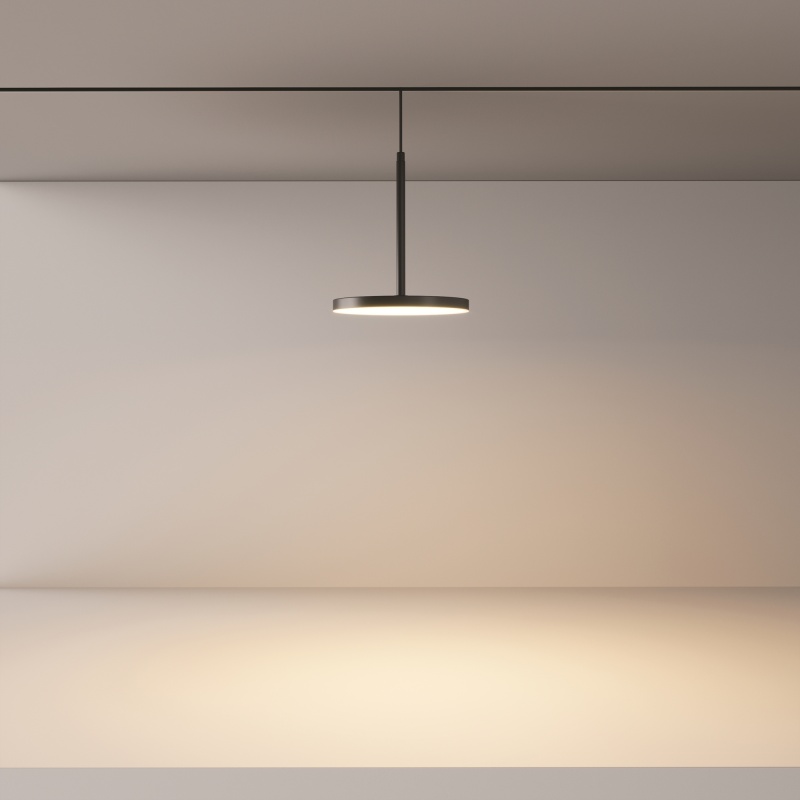 Алюминиевый корпус в черном цвете. Декоративные трековые подвесные светильники и на жестком основании в форме диска создадут широкий угол света и идеальны для общего равномерного освещения. Матовый опаловый рассеиватель выполнен из стекла и исключает слепящий эффект. LED-источник света. Поворотный механизм светильника на жестком основании позволяет менять направление светового потока в двух плоскостях: вокруг своей оси с поворотом на 355° и в горизонтальной плоскости с наклоном на 180°. Цветовая температура 3000K, 4000К, а также умные светильники с регулировкой цветовой температуры от 3000K до 6000K и диммированием по протоколу Bluetooth Mesh.