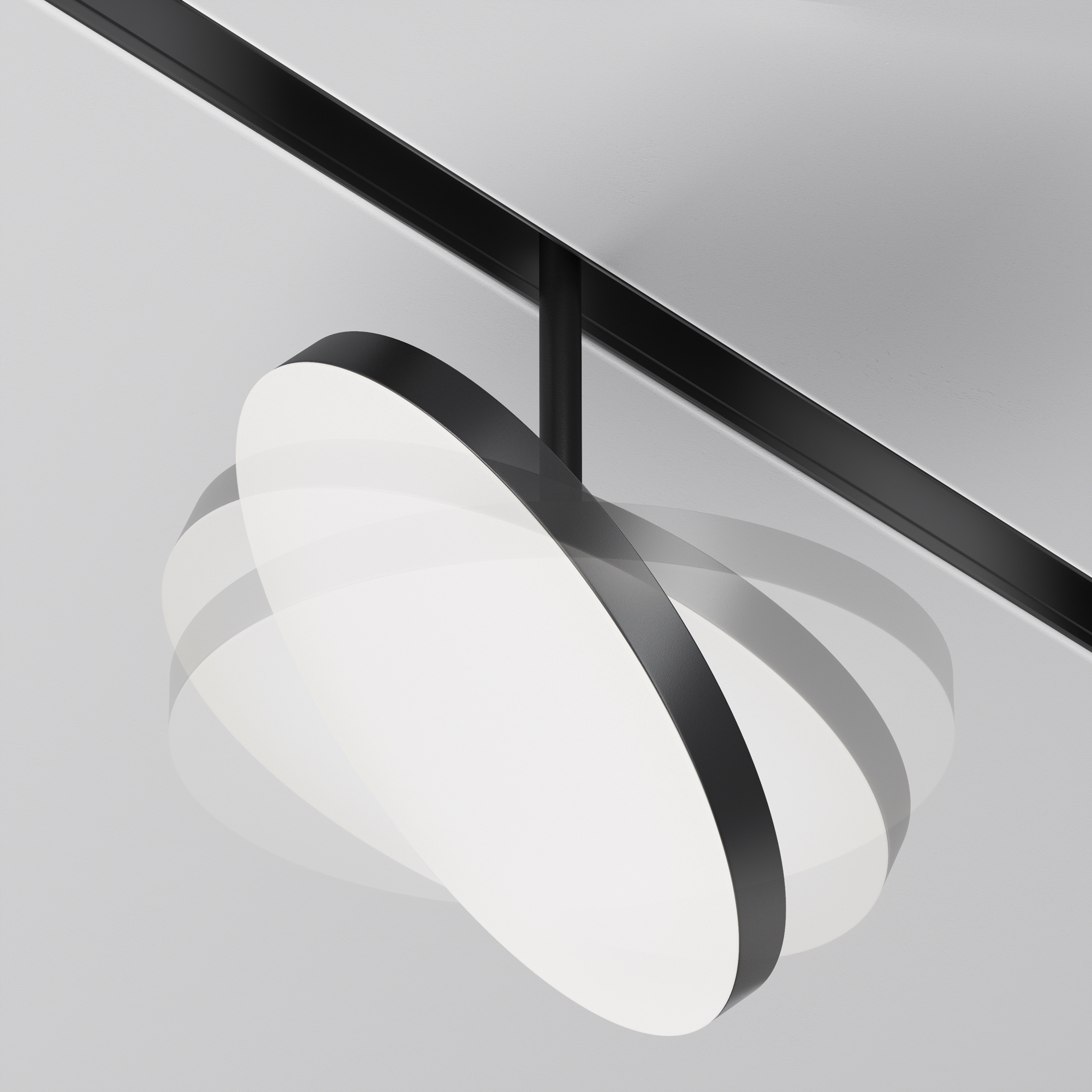 Алюминиевый корпус в черном цвете. Декоративные трековые подвесные светильники и на жестком основании в форме диска создадут широкий угол света и идеальны для общего равномерного освещения. Матовый опаловый рассеиватель выполнен из стекла и исключает слепящий эффект. LED-источник света. Поворотный механизм светильника на жестком основании позволяет менять направление светового потока в двух плоскостях: вокруг своей оси с поворотом на 355° и в горизонтальной плоскости с наклоном на 180°. Цветовая температура 3000K, 4000К, а также умные светильники с регулировкой цветовой температуры от 3000K до 6000K и диммированием по протоколу Bluetooth Mesh.