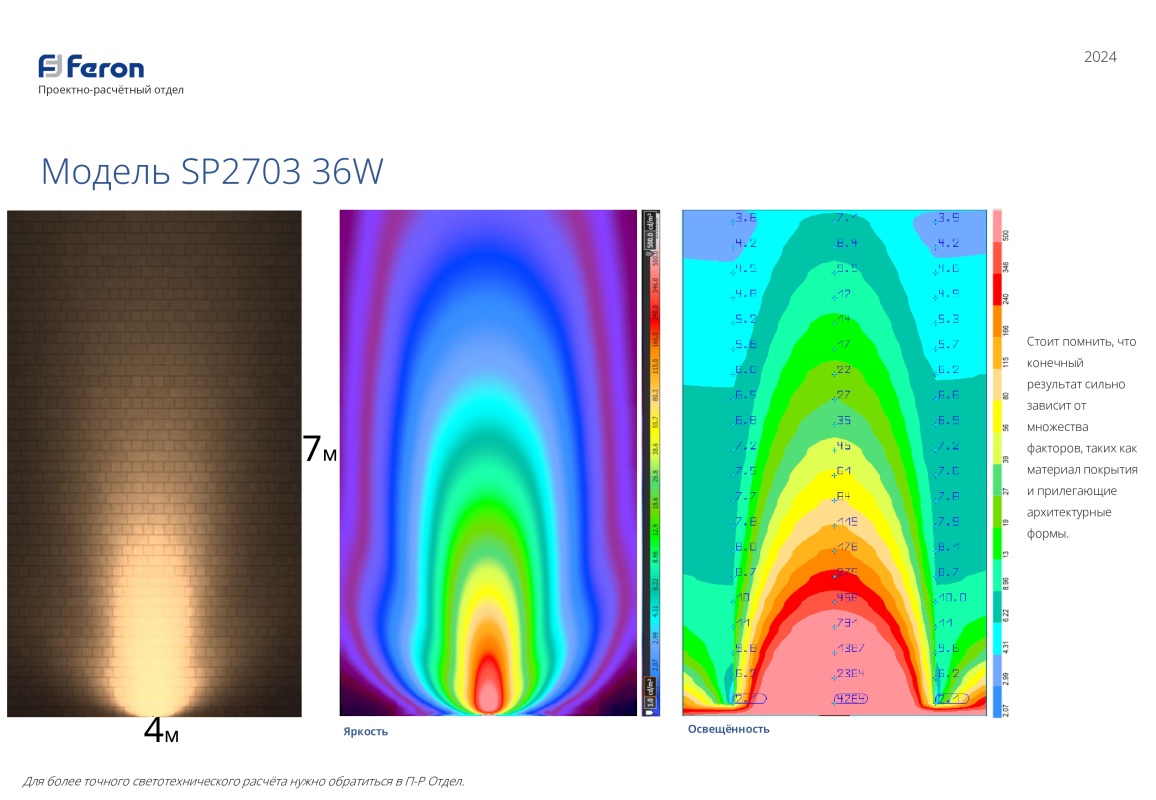 Характеристики Светодиодный светильник тротуарный (грунтовый) Feron SP2703 36W 6400K 230V IP67