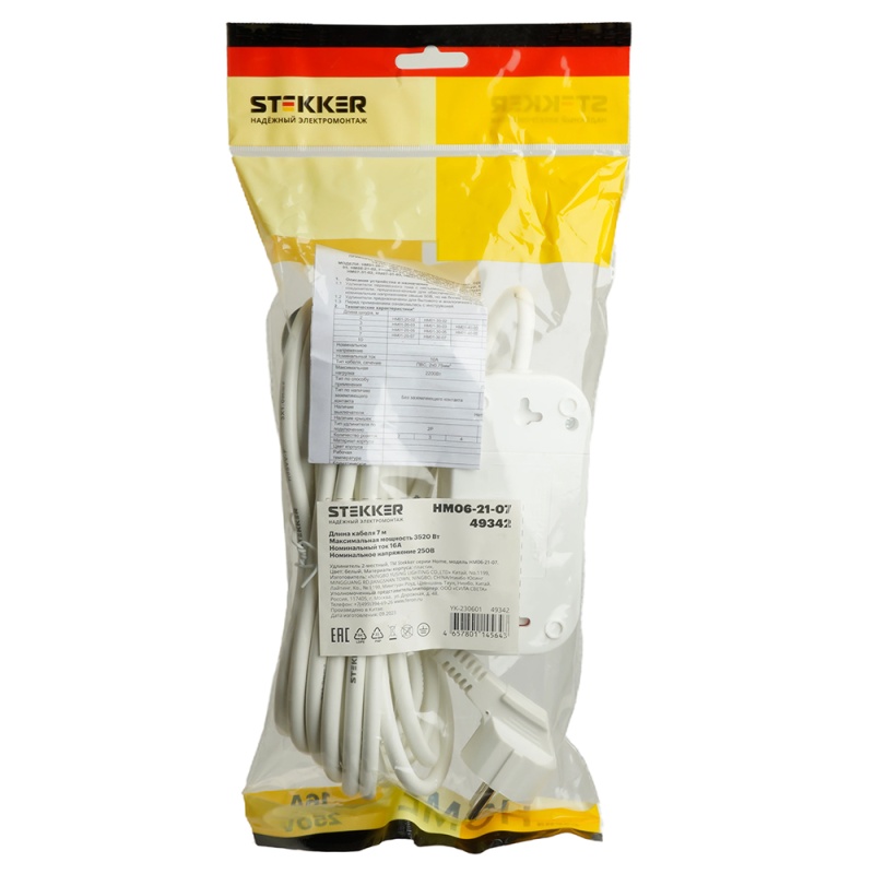 Удлинитель двухместный с/з STEKKER HM06-21-07 3x1мм2, 7м, серия Home (У10-001), белый 49342