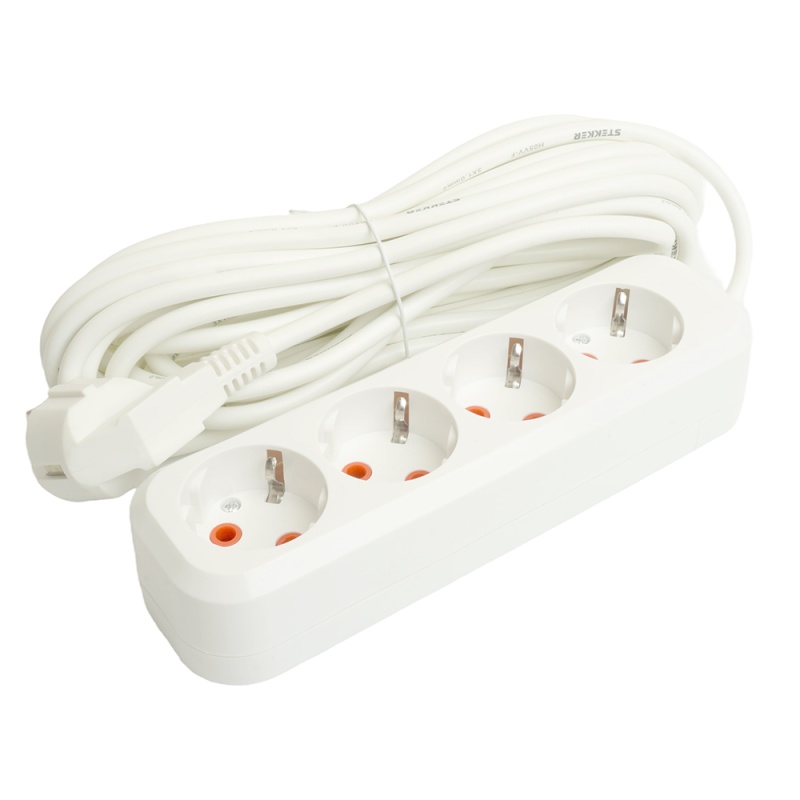 Отзывы о Удлинитель четырехместный c/з STEKKER HM06-40-05 3x1мм2, 5м, серия Home (У10-429), белый