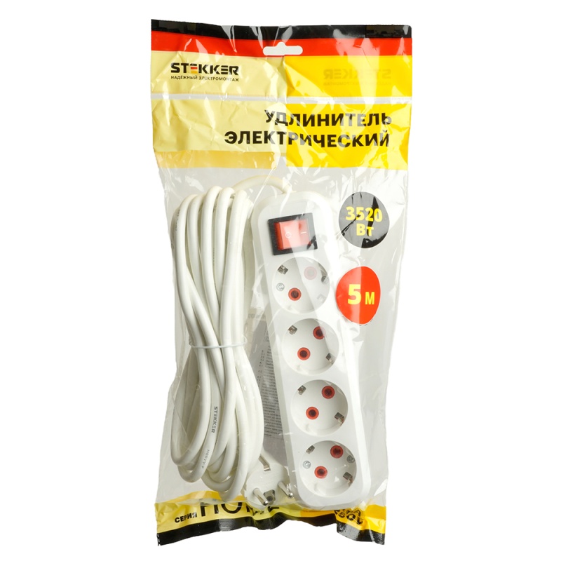 Отзывы о Удлинитель четырехместный с/з с выключ. STEKKER HM07-41-05 3x1мм2, 5м, (У16А-003) серия Home , белый