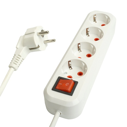 Удлинитель четырехместный с/з с выключ. STEKKER HM07-41-05 3x1мм2, 5м, (У16А-003) серия Home , белый 49360