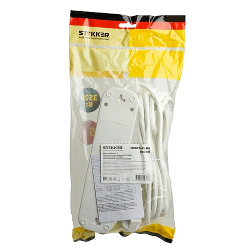 Характеристики Удлинитель четырехместный с/з с выключ. STEKKER HM07-41-05 3x1мм2, 5м, (У16А-003) серия Home , белый