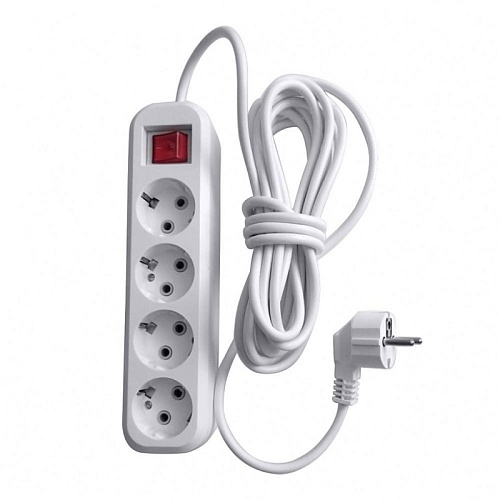 Удлинитель четырехместный с/з с выключателем STEKKER HM03-41-03 3x0,75, 3м, серия Home (У10А-003), белый 39524