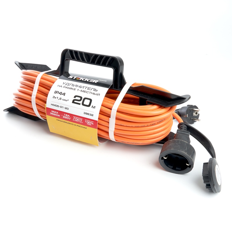Отзывы о Удлинитель-шнур на рамке 1-местный с/з Stekker, HM05-01-20 (US1), 3*1,5мм2, 20м, 220В, 16А, Home, оранжевый (US1)