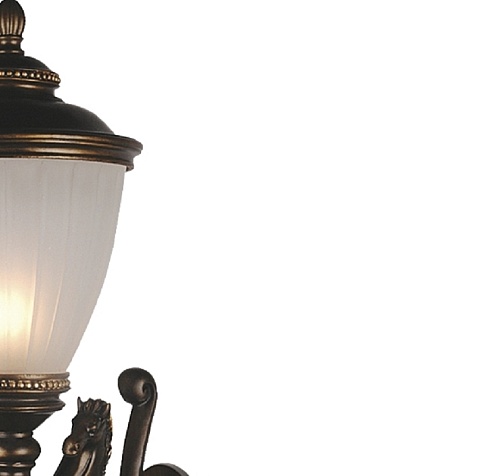 Каркас из металла, декор из гипса золотисто-коричневого цвета, плафон из белого матового стекла, сменная лампа, цоколь E27.