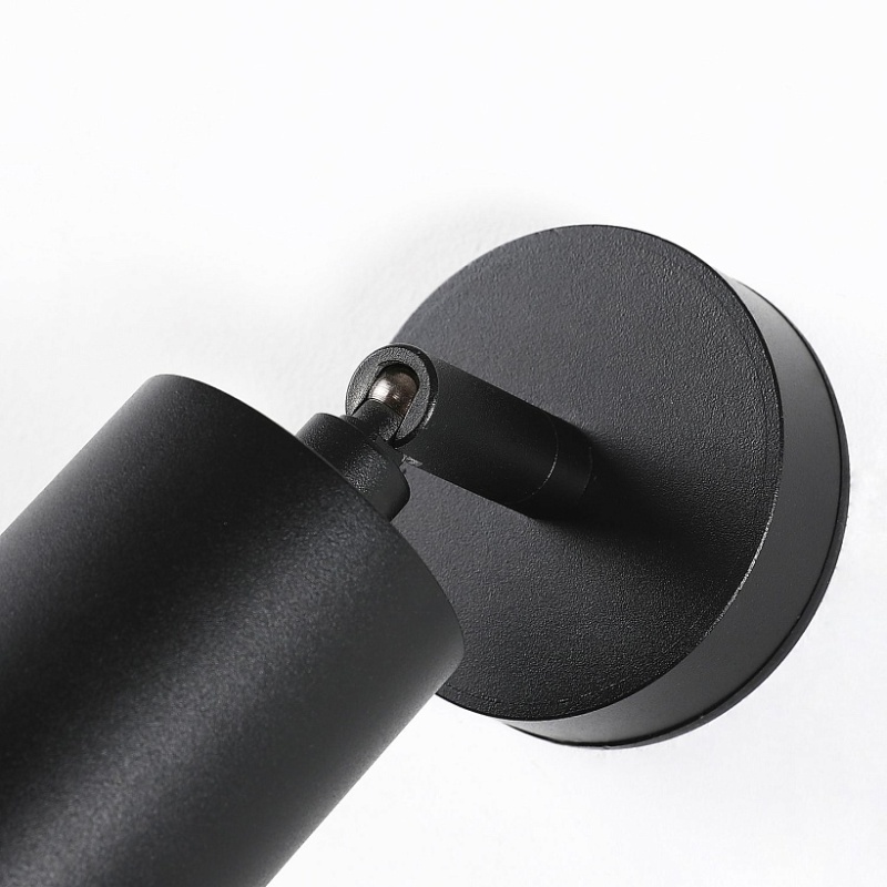 Металлический каркас черного цвета, поворотный плафон, сменная лампа GU10, IP65.
