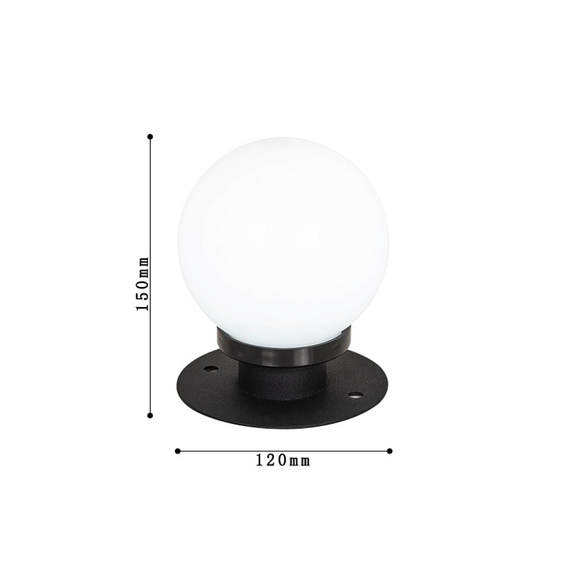 Металлический каркас черного цвета, плафон из белого акрила, IP44.