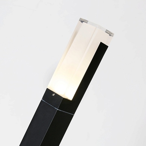 Металлическое основание черного цвета; плафон из акрила, двухслойный рассеиватель из прозрачного и матового акрила, IP54.