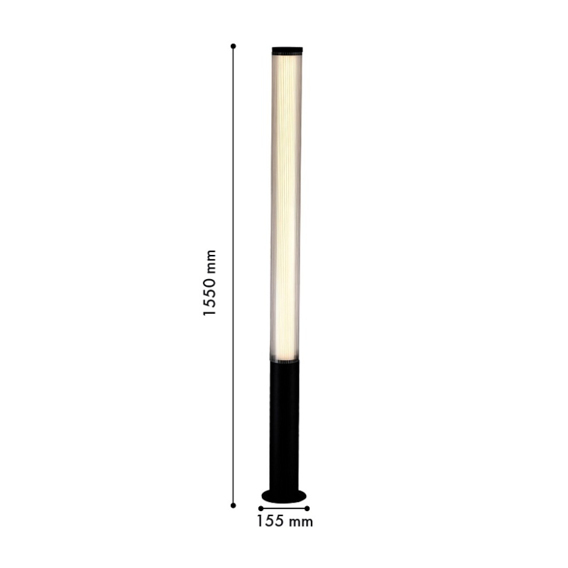 Каркас из метала черного цвета, внешний плафон из прозрачного акрила, внутренний плафон из белого рифленого акрила, LED-модуль.