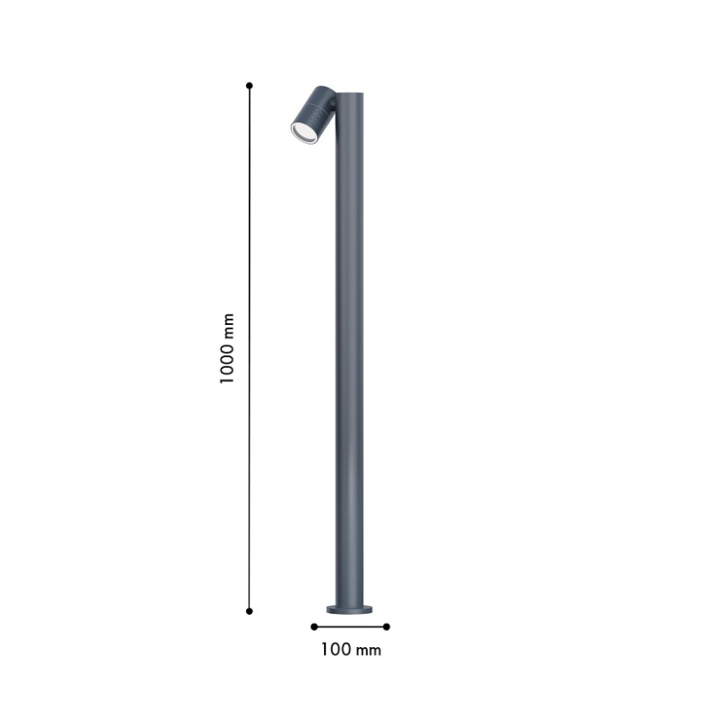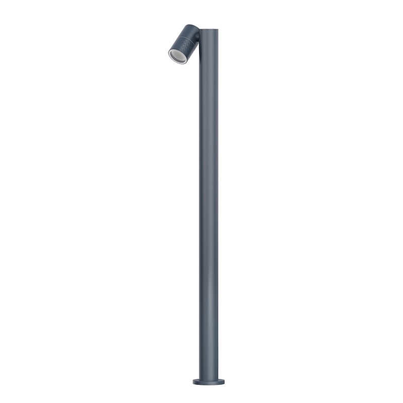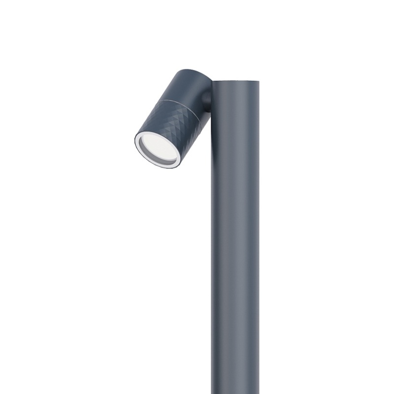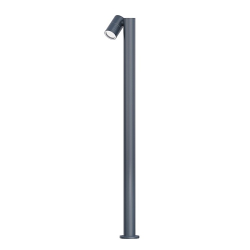 Металлический каркас серого цвета, поворотный плафон, состоящий из гладкой и ребристой части, сменные лампы GU10.