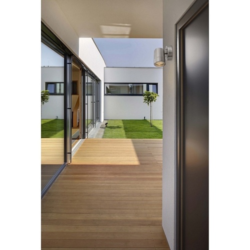 Корпус светильника выполнен из матированной нержавеющей стали. Источник света закрыт прозрачным стеклом.